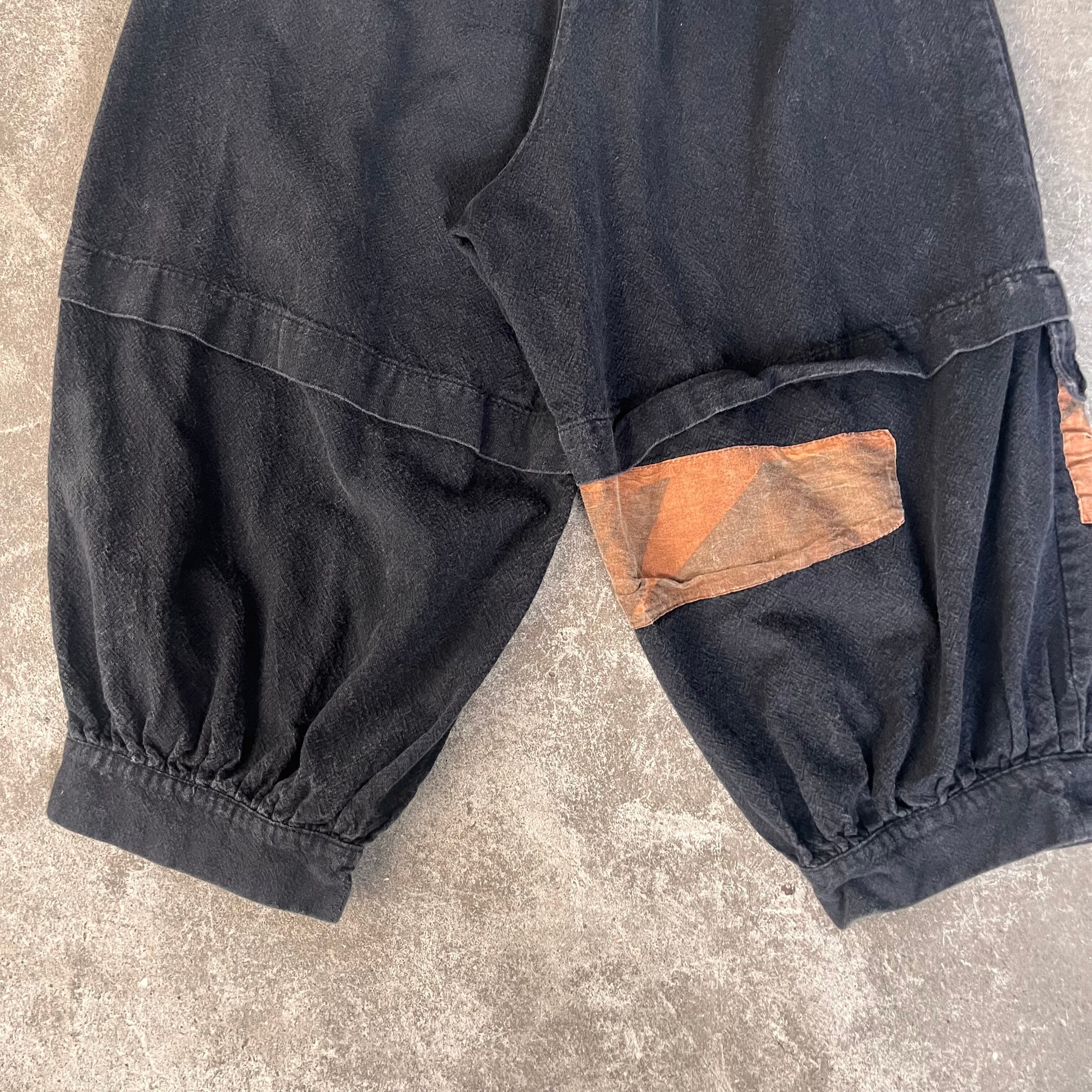 Japan vintage "明暗" サルエルパンツ コットン ギャザー 手拭いリメイク 黒