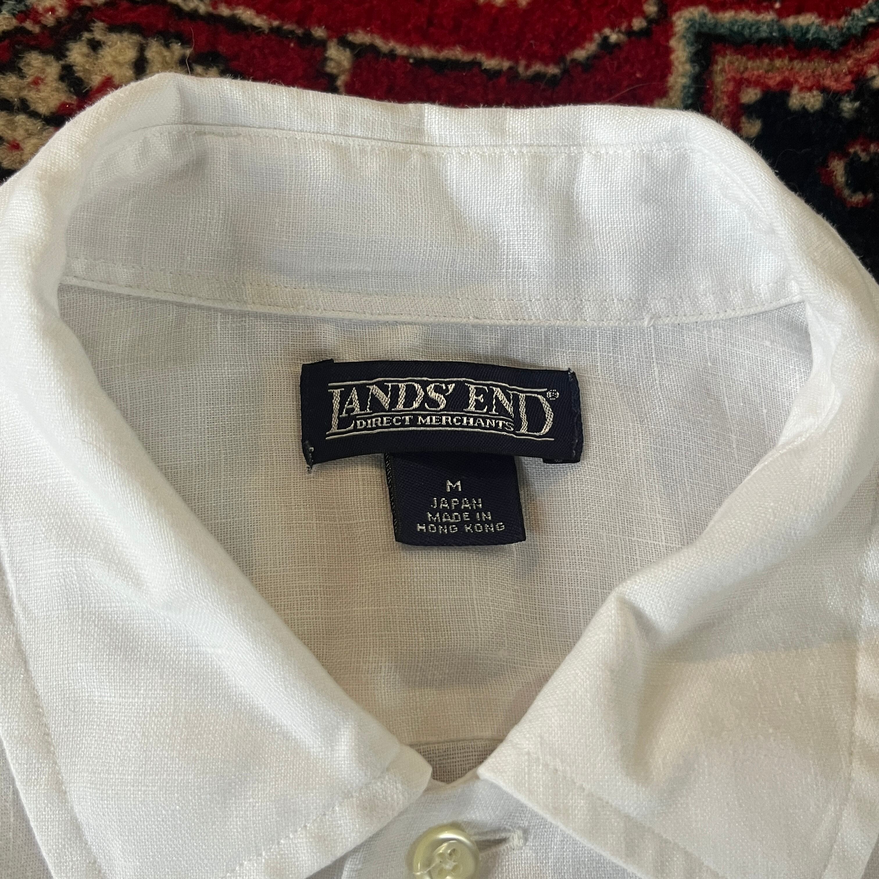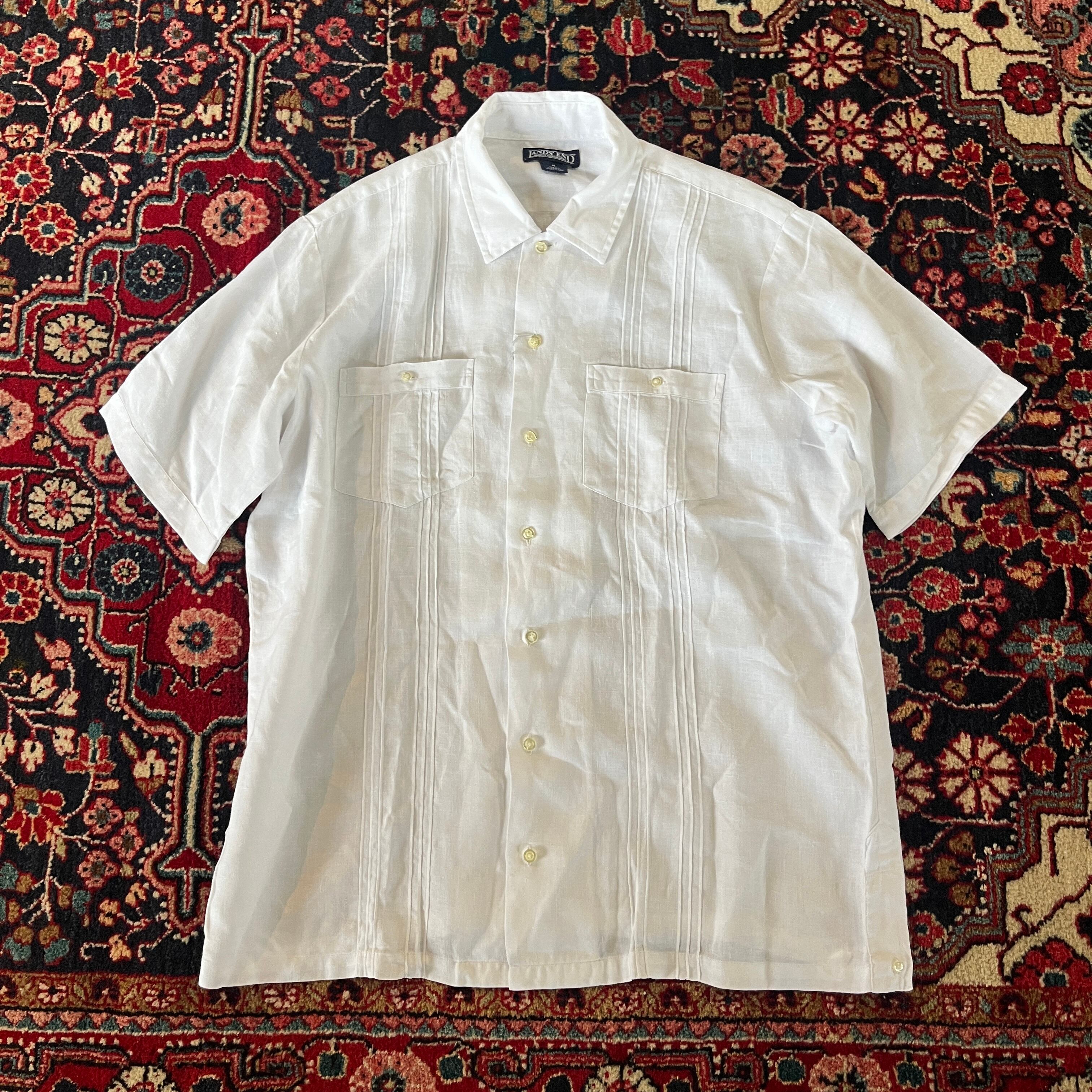 90s LANDS'END "WHITE LINEN SHIRTS" cuba style / ランズエンド 白リネンシャツ キューバシャツスタイル