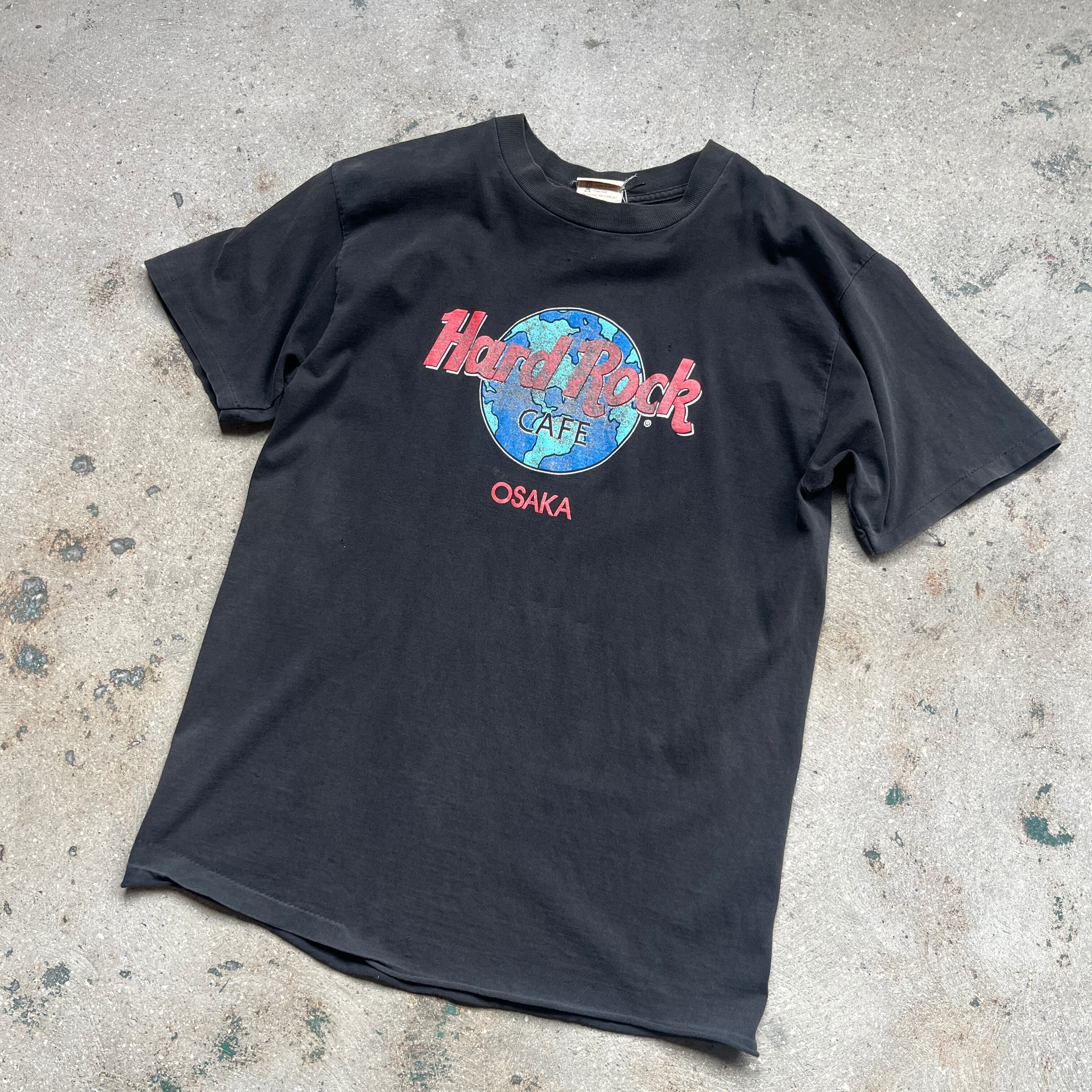 90s Hard Rock Cafe osaka T-shirts black made in usa large / ハードロックカフェ L 黒 ダメージ フェード Tシャツ