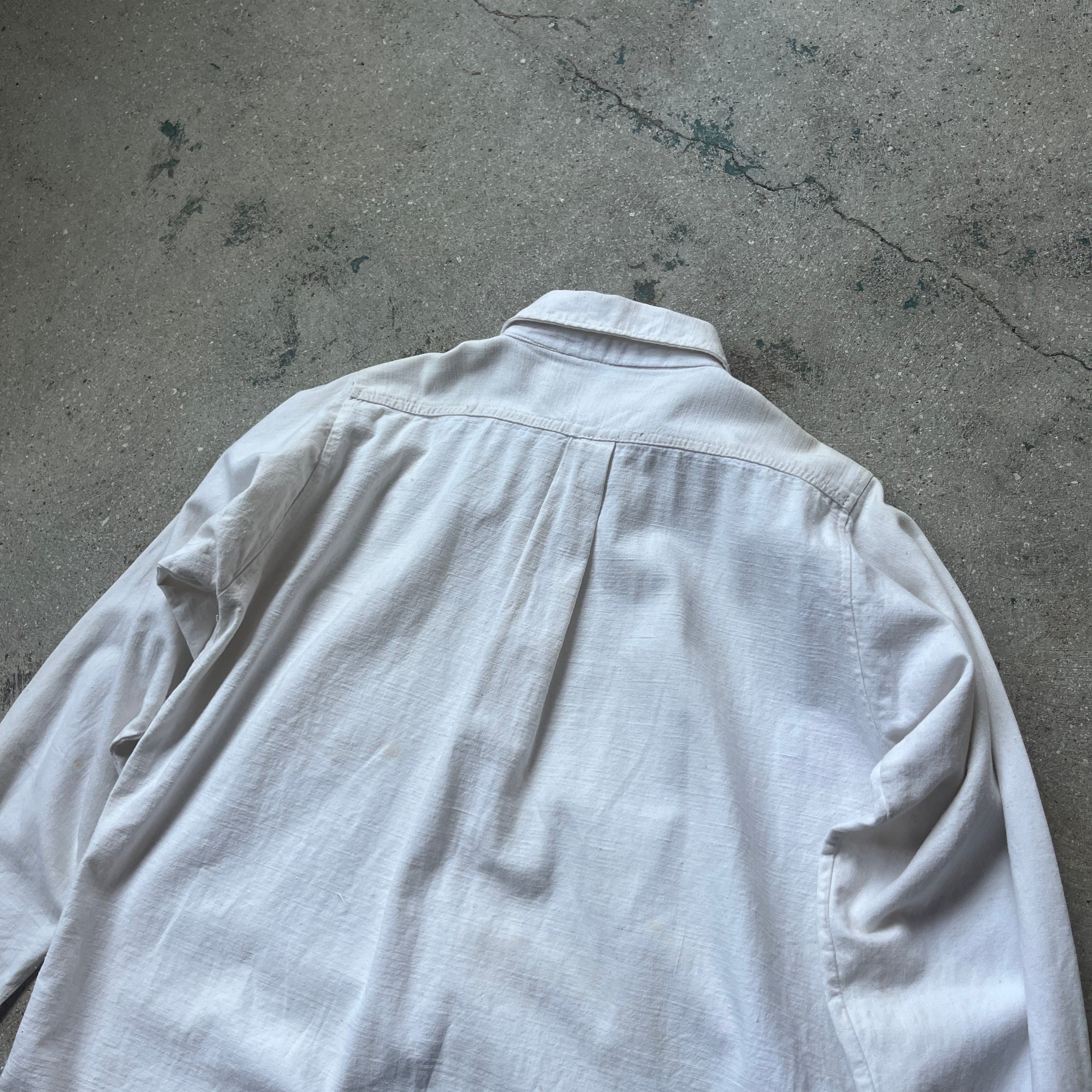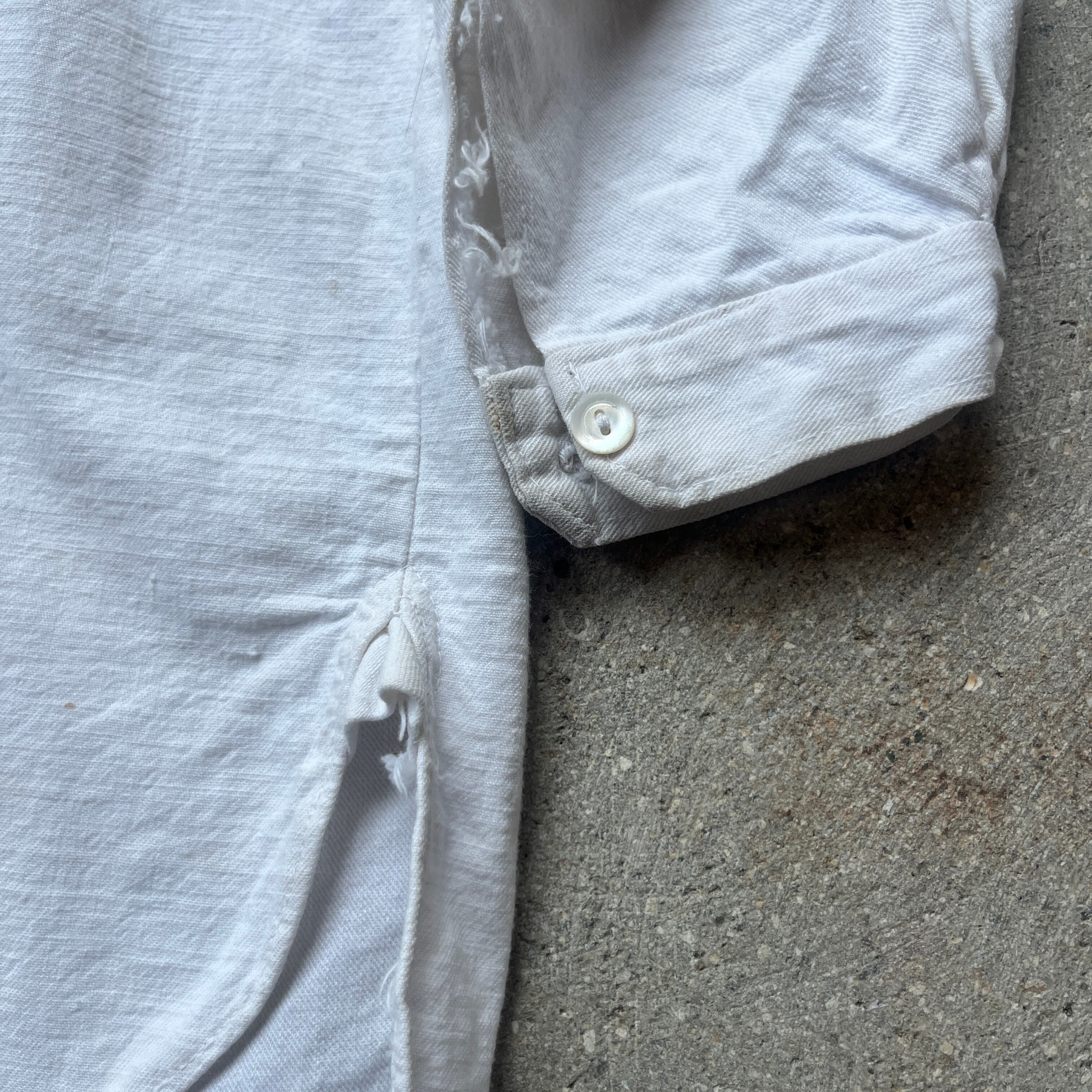 〜60s vintage cotton shirts white insideout boro shell botton / ヴィンテージ シャツ コットンシャツ シェルボタン インサイドアウト マチ付き