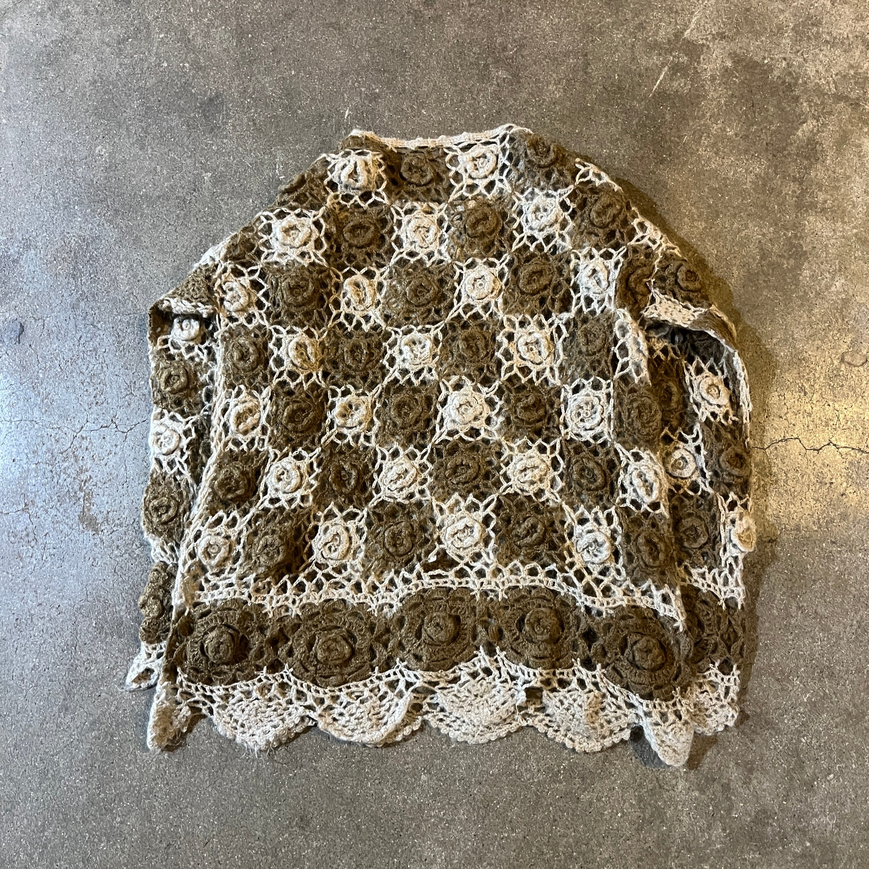 Hand Crochet Floral Grid Knit Brown / フラワー グリッド クロシェニット ハンドニット ブラウン