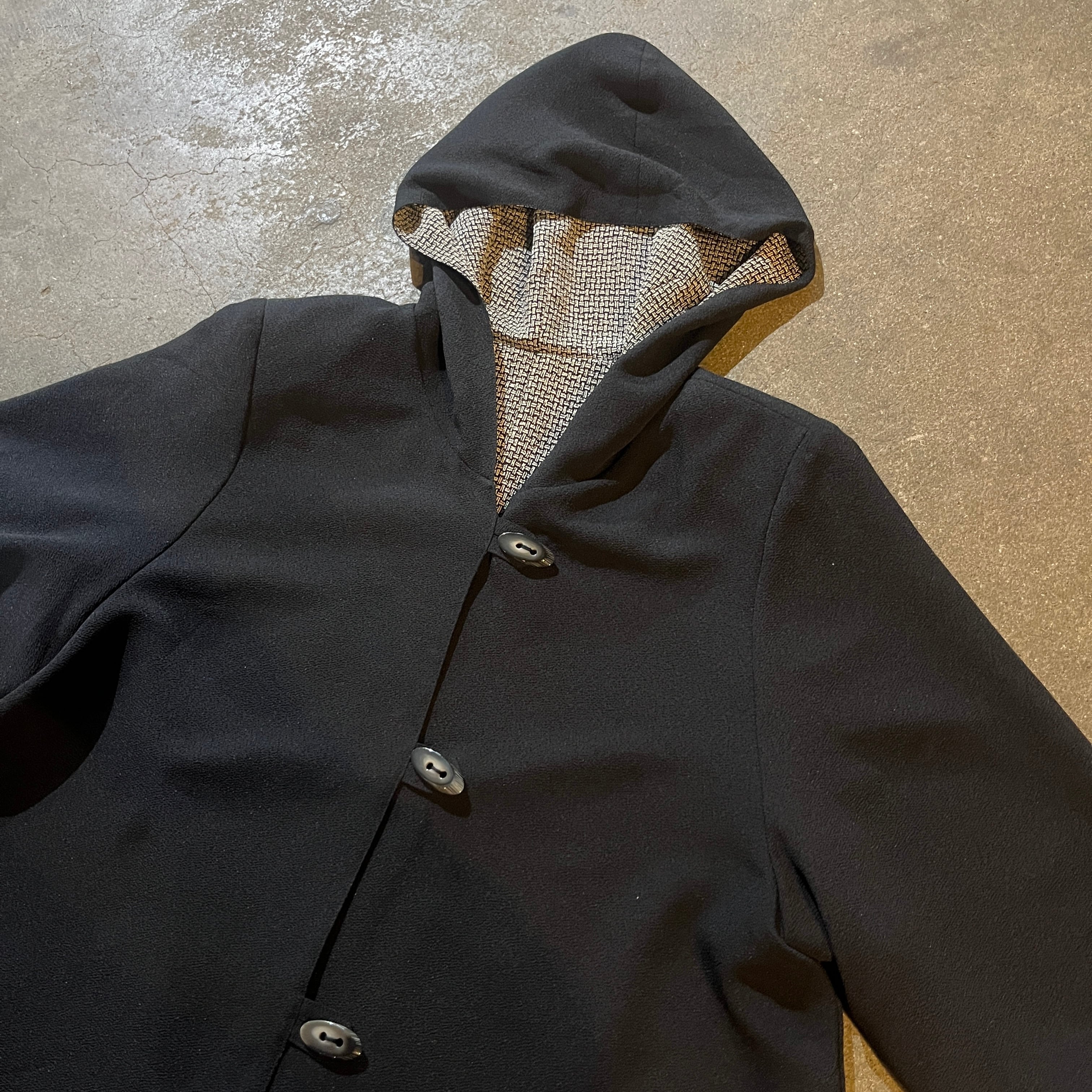Vintage Kimono Style Reversible Food Coat Black / 着物風 リバーシブルコート 総柄 単色