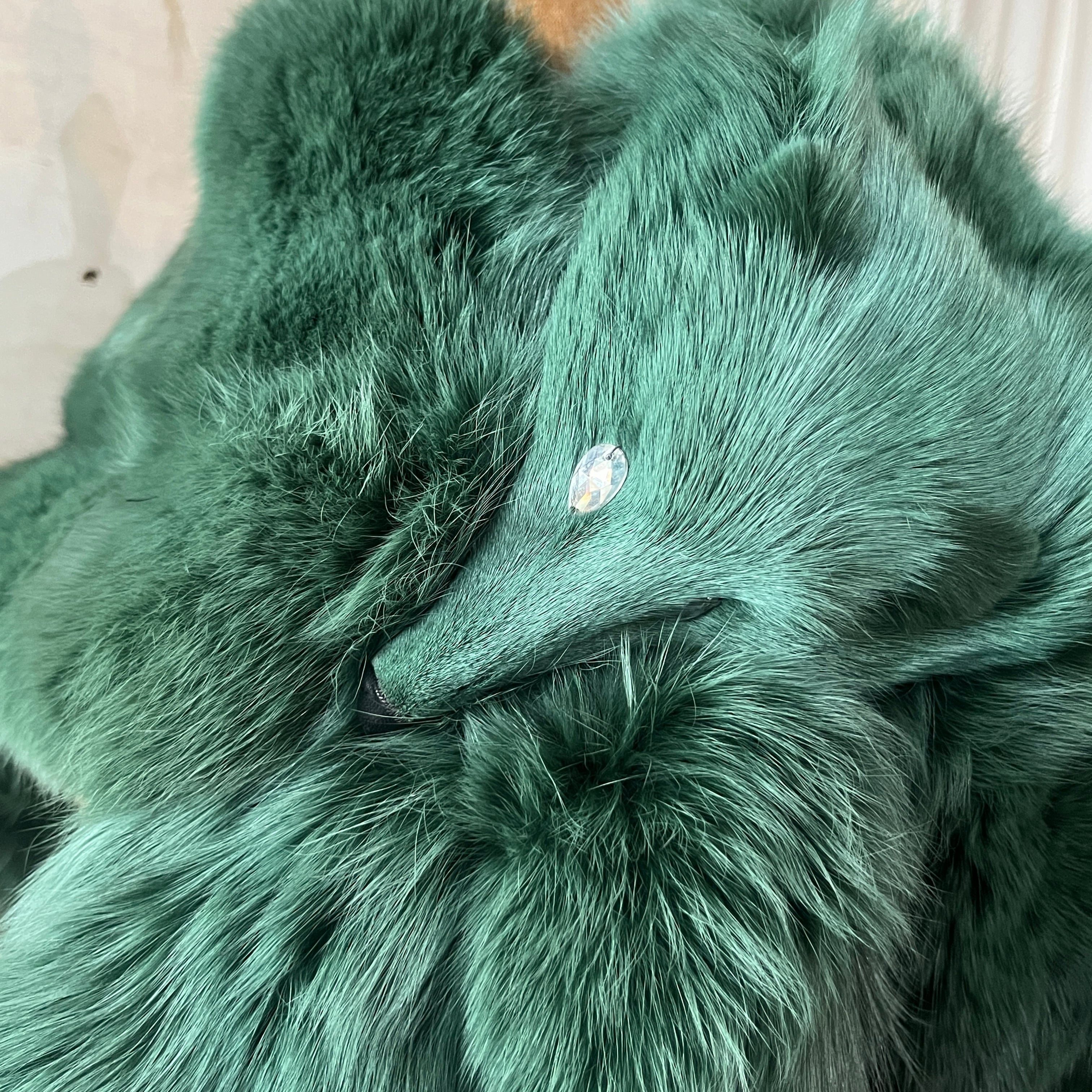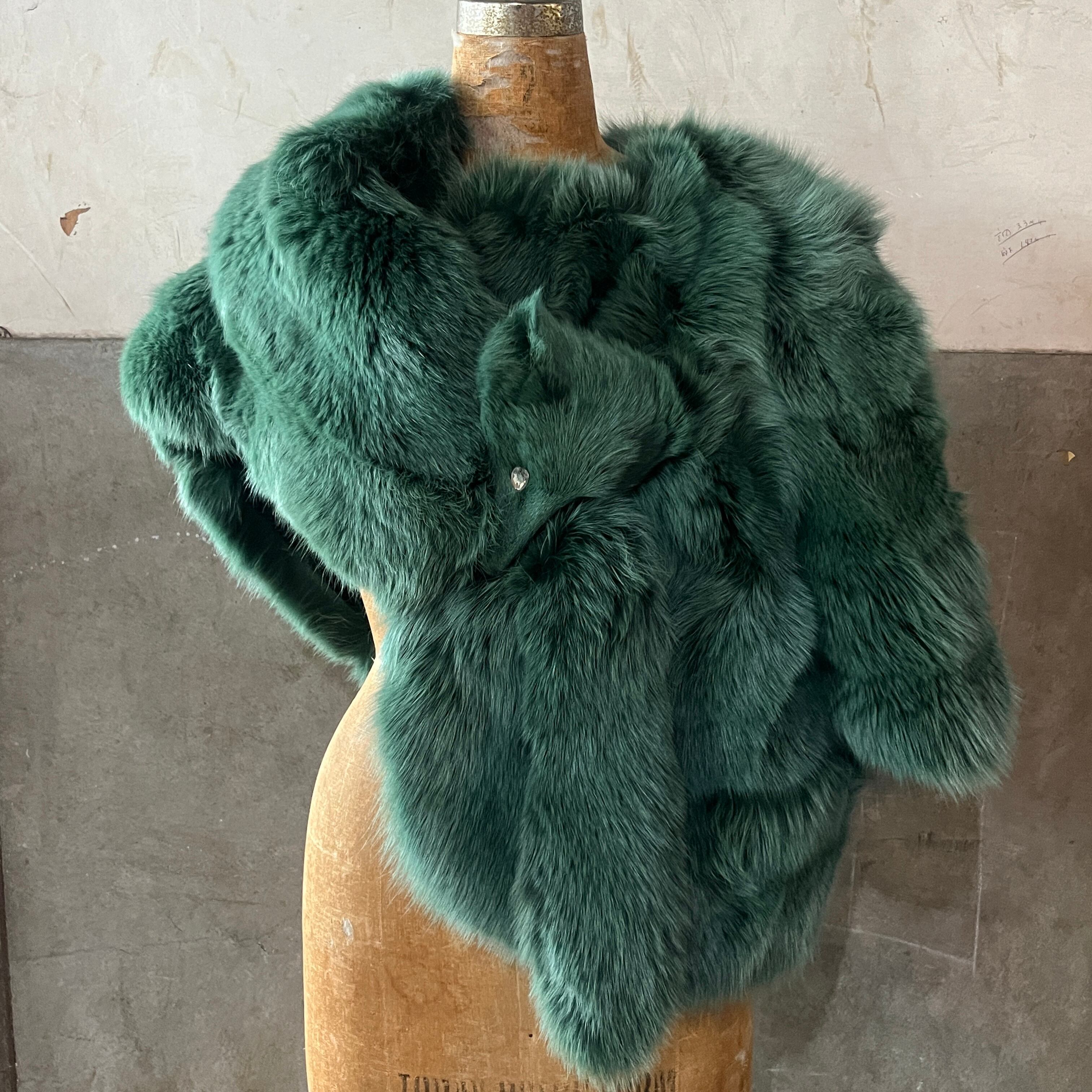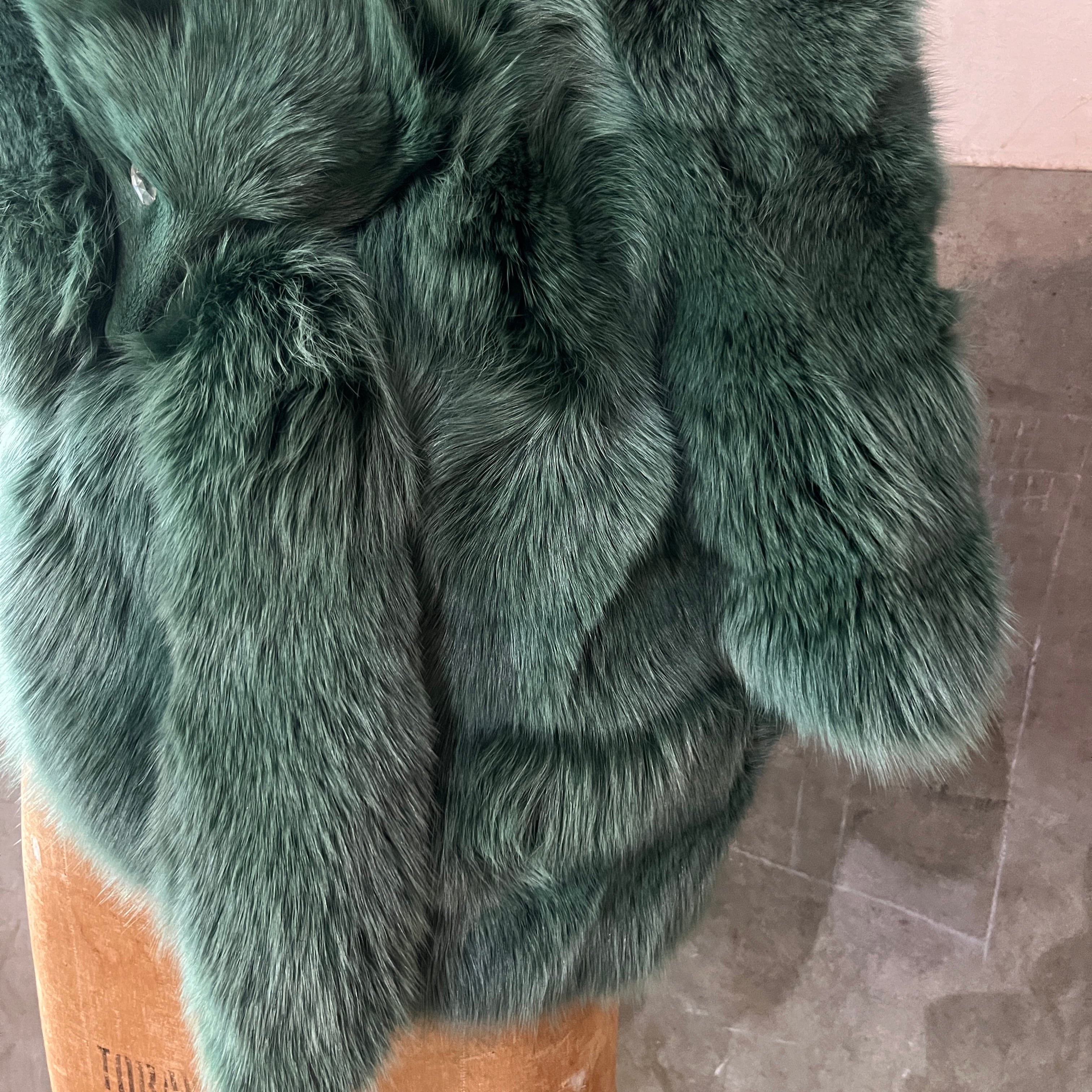 Vintage Fur Jacket Green Fox Haori / 緑ファー ジャケット 羽織り キツネ